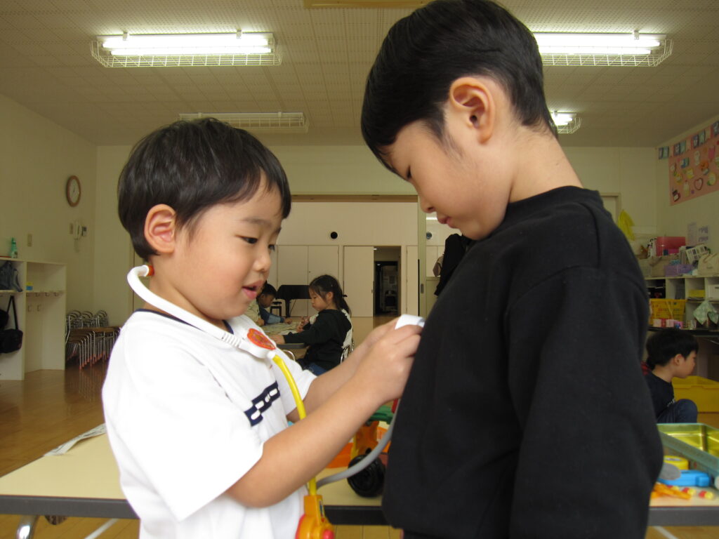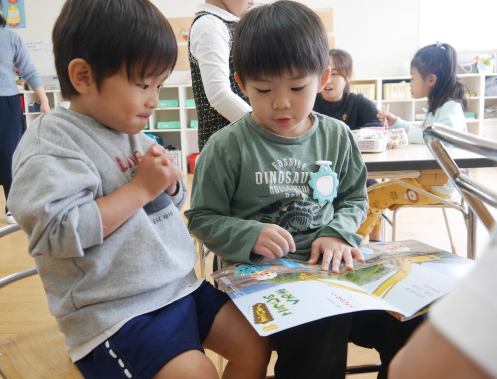 年長組さんがお芋掘りに行った日、年中組・年少組は一緒に過ごしました!