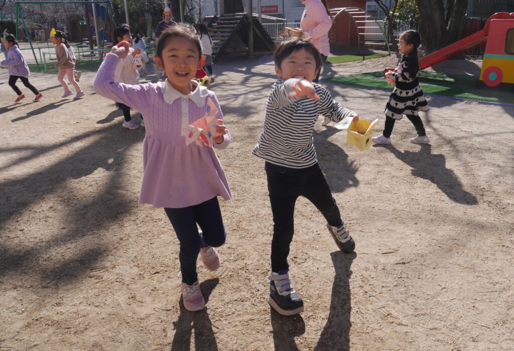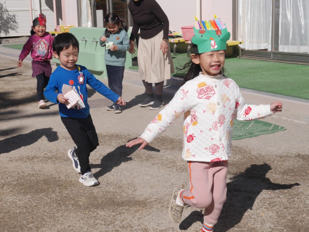 豆まきが終わった後は「もう悪い鬼いなくなったから、泣かない!!」とまた一つ強くなった子どもたちの姿がありました!