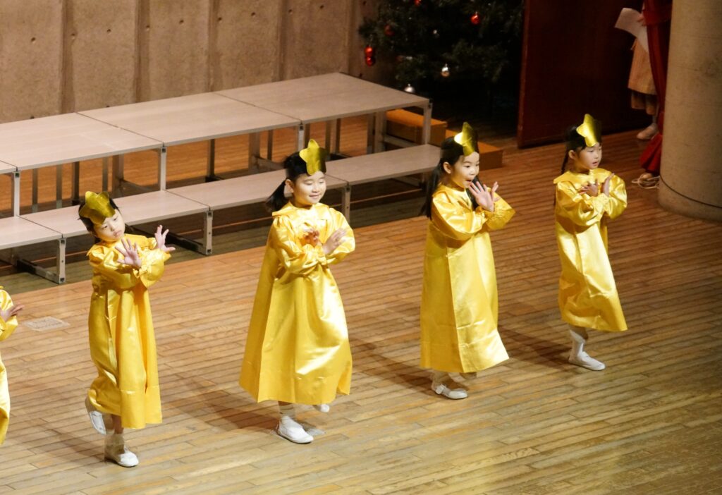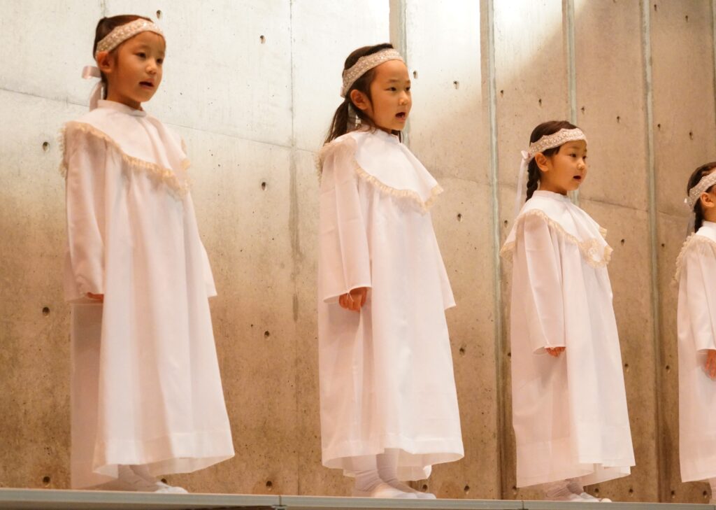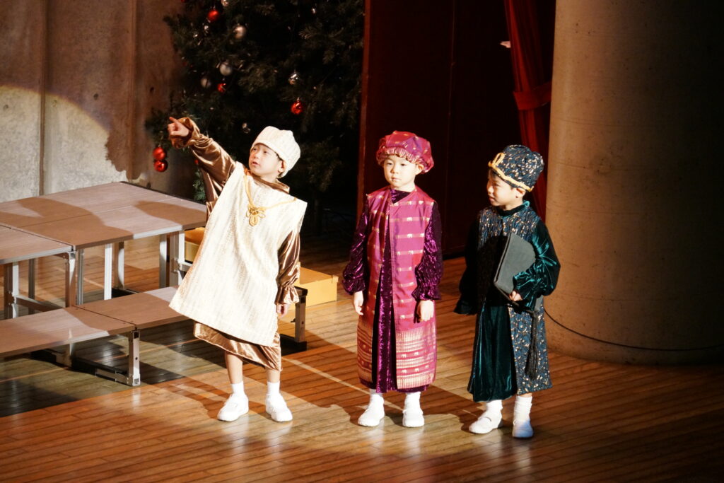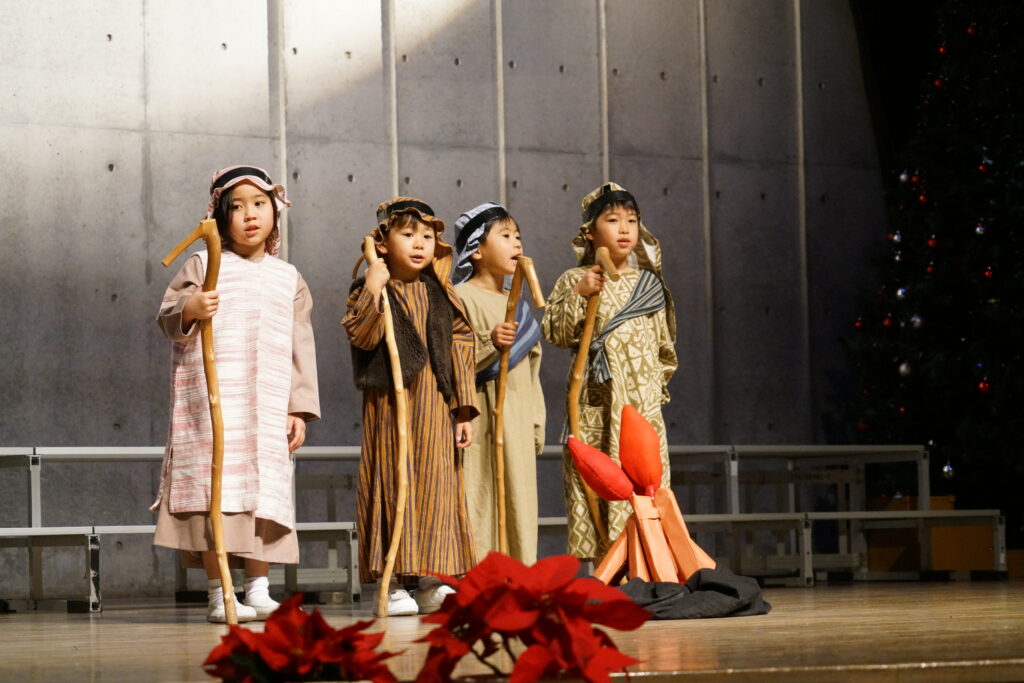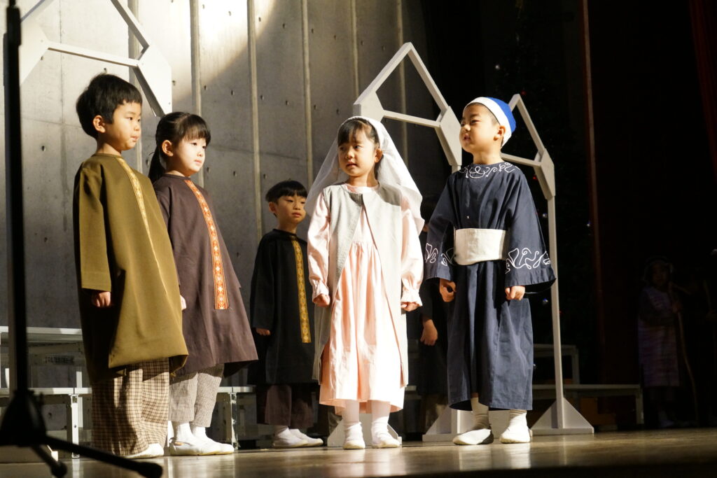 イエスさまのお誕生をみんなに伝えてくれました。それぞれがセリフを頑張って覚え、心をひとつにして演じました。